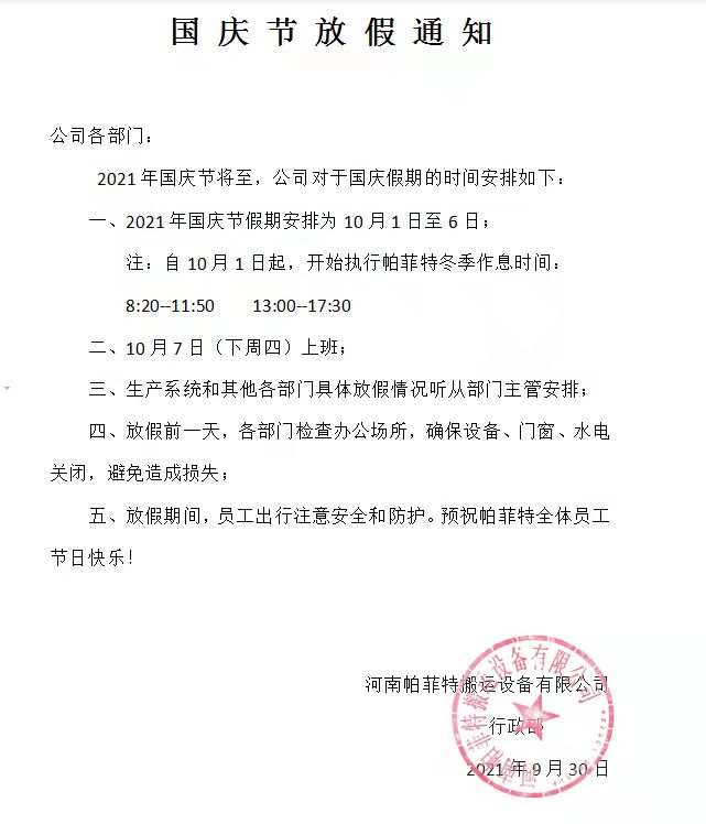 A、各位员工放假离开时把各自工作岗位的水、电关好,杜绝一切安全隐患
