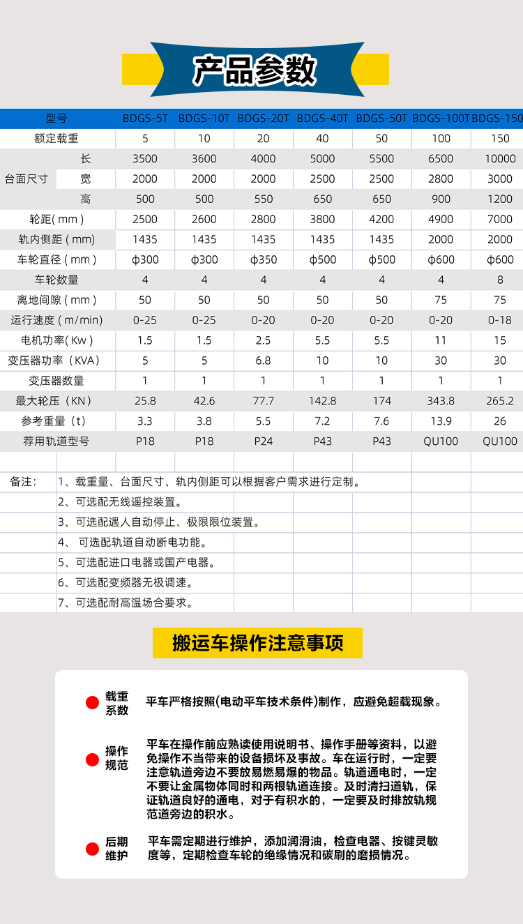BDGZ系列是低压轨道供电轨道平车,是将交流380V的电源通过变压器将至交流36V两相,分别接至两根轨道上,轨道平车上的车轮将道轨上的交流36V电源引入车载电气箱,经过整流模块将交流36V整流至直流36V,再通过直流控制系统控制直流电机,使平车启动,停止,前进,后退,调速等。该系列平车能够在S轨道,弧形轨道运行。