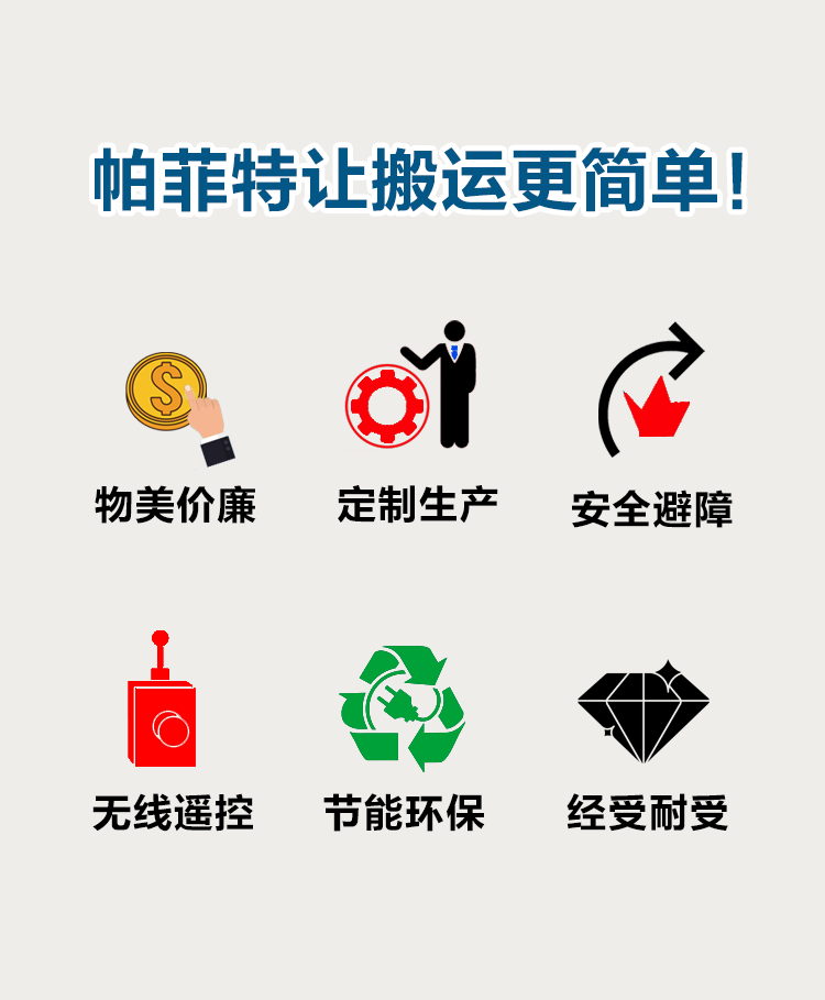 BWP系列电动平车以铅酸蓄电池为能源,以控制模块为控制核心,以操作手柄和遥控控制为输入手段,以台面负载货物,以转向轮导引方向并和固定轮共同承载重量,以电机提供原始动力,以减速机放大扭矩并提供给固定轮动力,以LED声光报警器为工作和警示标志,以智能充电机为外部电源输入。在以上的功能配合下,共同组成BWP系列电动平车的工作能力。客户案例