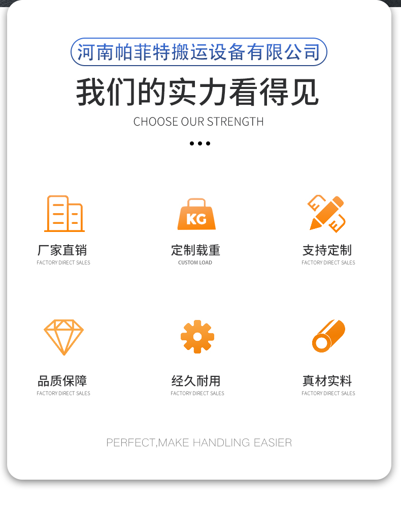 一对一量身设计规划产品方案,用户可在线咨询搬运车的配置问题,也可以到厂面对面沟通,方便我们为您提供更详尽的配置方案;